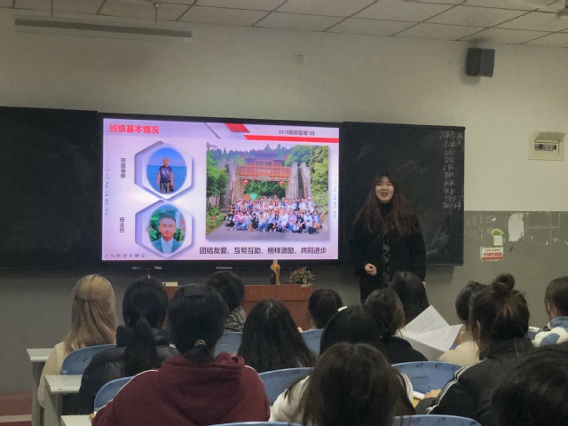 宣讲活动按照学校要求,邀请本次获得先进班集体的三个班班长——2019旅游管理1班班长李沙沙、2020旅游管理2班班长谭美凝、2020旅游英语1班班长唐坤——到其他班进行宣讲,各班辅导员担任主持。班会开始,辅导员先介绍了此次班会的重要性和意义;其次,获得先进班集体的班长从班团组织、班风学风、宿舍文明、文体活动等方面介绍了自己班级是如何成为先进班集体的,这其中还特别强调了班级氛围和班级凝聚力的重要性;最后,针对学弟学妹们提出的问题,三位班长就自己的经验和认识作了回答和讨论。