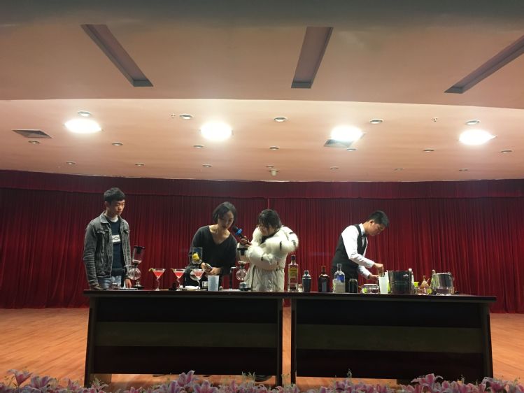 讲座中,王苏副教授首先为大家科普了鸡尾酒的含义,帮助师生快速了解鸡尾酒的特点。随后,旅游系第十一届全国旅游院校服务技能大赛一等奖获得者汤沅滨同学为现场师生演示了英式鸡尾酒的调制动作和规范要点,现场气氛活跃,互动性强。最后,王苏副教授讲解了分子鸡尾酒的基本概念和调制技术,并邀请两位同学现场调制了两杯独特的分子鸡尾酒。