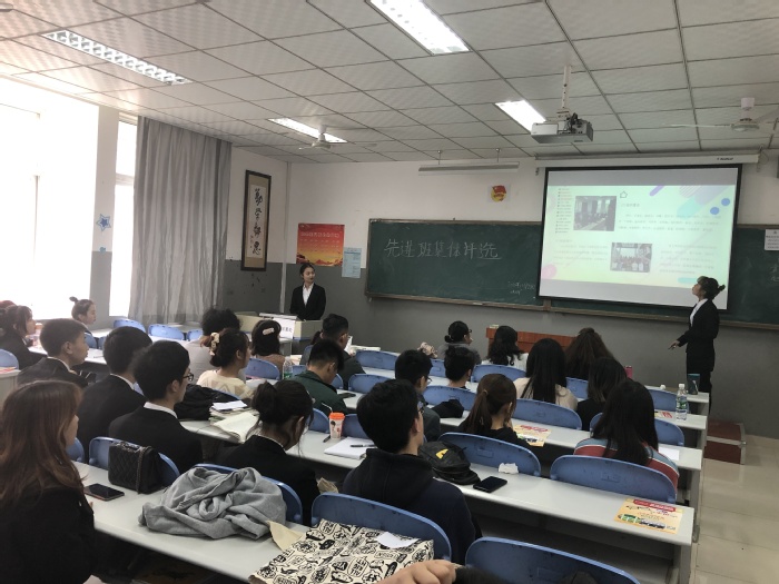 首先,曾维静老师介绍了本次评选答辩的流程及要求,各班代表按抽签顺序依次登台,通过PPT、演讲等多种形式,各个班级分别从组织建设、班风建设、学风建设、文化建设、宿舍文明建设、创新工作与特色活动等诸多方面展示了班级独特的精神风貌和班级建设成果。所有班级展示结束后,蒋敬老师对本次大会进行了点评,对参选班级的成绩给予了肯定和赞扬,对2020级的新生提出了几点要求并寄予殷切期望,希望他们能以学长学姐为榜样,不断超越自己。