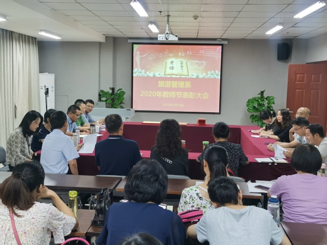 2020年9月10日下午,正值第36个教师节之际,旅游管理系召开了2020年教师节表彰大会,对2019-2020学年度表现优异的先进集体和先进个人进行表彰,会议由张志友书记主持,旅游管理系全体教师参加。