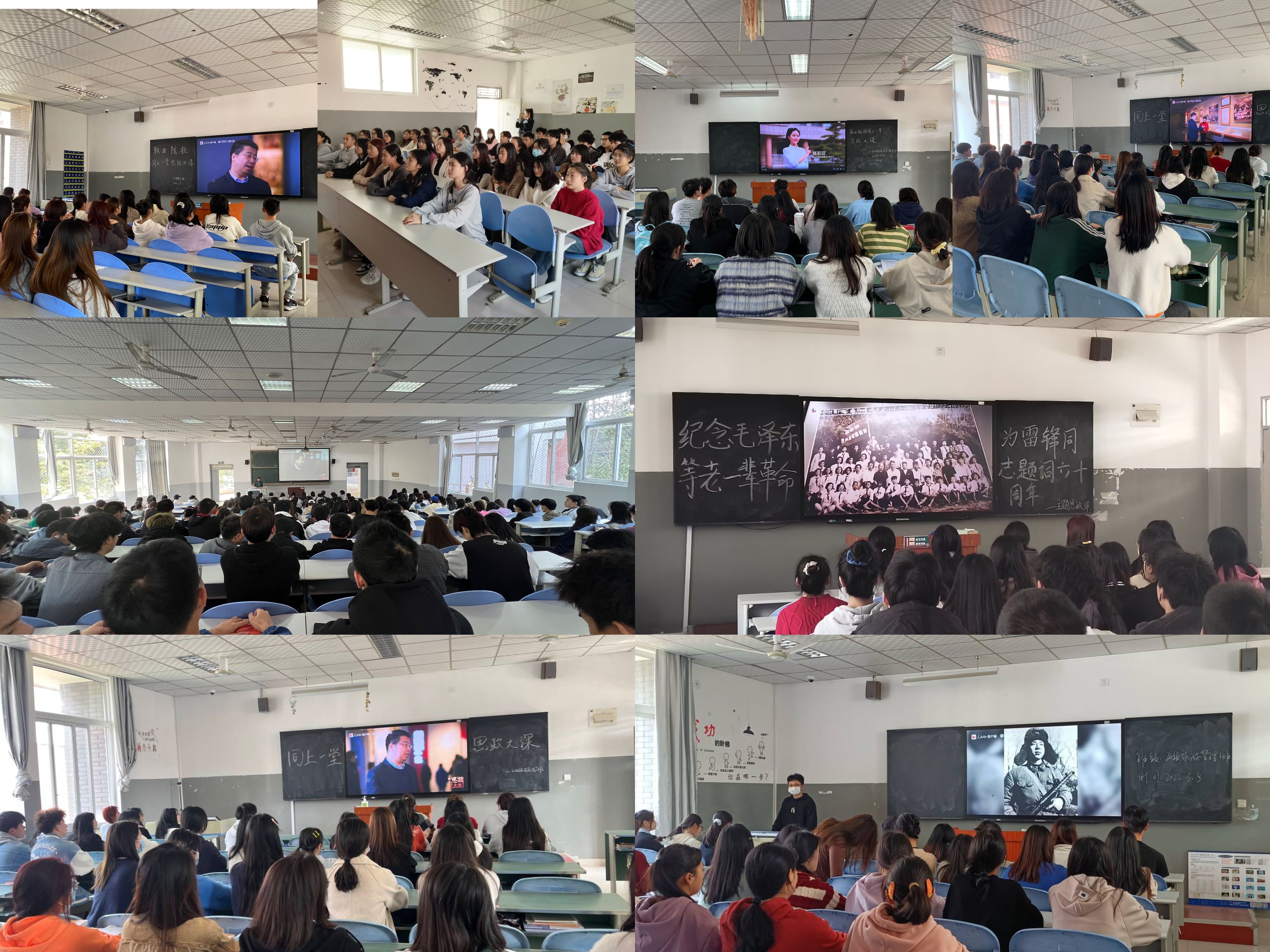 2023年3月5日,教育部职业教育与成人教育司会同人民网联合推出职业院校“同上一堂思政大课”系列课程第六课开讲了,旅游管理系全体师生以多种学习形式积极参与了此次“纪念毛泽东等老一辈革命家为雷锋同志题词六十周年主题思政课”的学习。