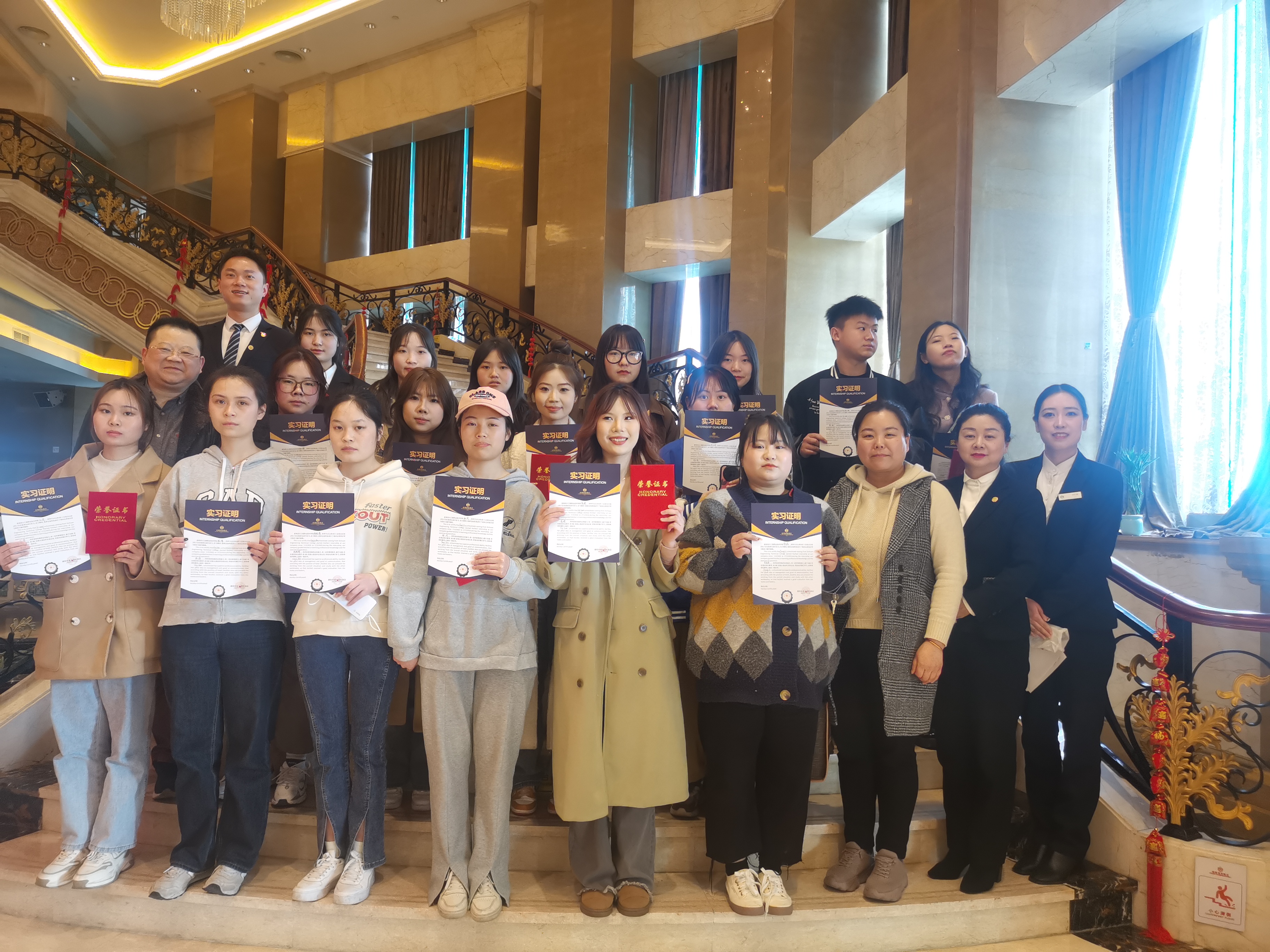 3月1日下午,在旌湖宾馆1号楼2楼晨曦厅召开了2020级旅游英语专业顶岗实习总结大会,旌湖宾馆人事质检培训部经理何慧清和旅游管理系张伟主任共同出席总结大会,并对优秀实习生进行了表彰奖励。本次总结大会上,培训部主管刘林首先与大家共同分享了同学们在酒店实习六个月的点点滴滴,从8月底服务清洁能源大会的初见,到国庆繁忙工作的剪影,11月、12月与酒店共同抗疫、共克时艰的不易,疫情解封后春节仍然坚守岗位的酒店人,学生代表也先后发言分享了各自在本次实习中的成长经历和学到的经验。何经理在总结大会上肯定了全体同学这六个月的实习表现,表扬他们勇挑重担,时刻发扬服务精神,敬业精神,很好地展现了当代青年的风采;张伟主任也勉励大家需要不断努力,不断修炼,“英雄亮剑正当时”,鼓励同学们要在不断的奋斗中展现当年轻人的朝气和活力。会议最后,酒店对本次优秀实习生进行了表彰和奖励,特别为两名表现突出的同学袁婷、刘思懿增设了“组织协调奖”和“客人好评奖”,以此鼓励他们两人在本次实习中的突出贡献,也对其他同学给予了厚望。