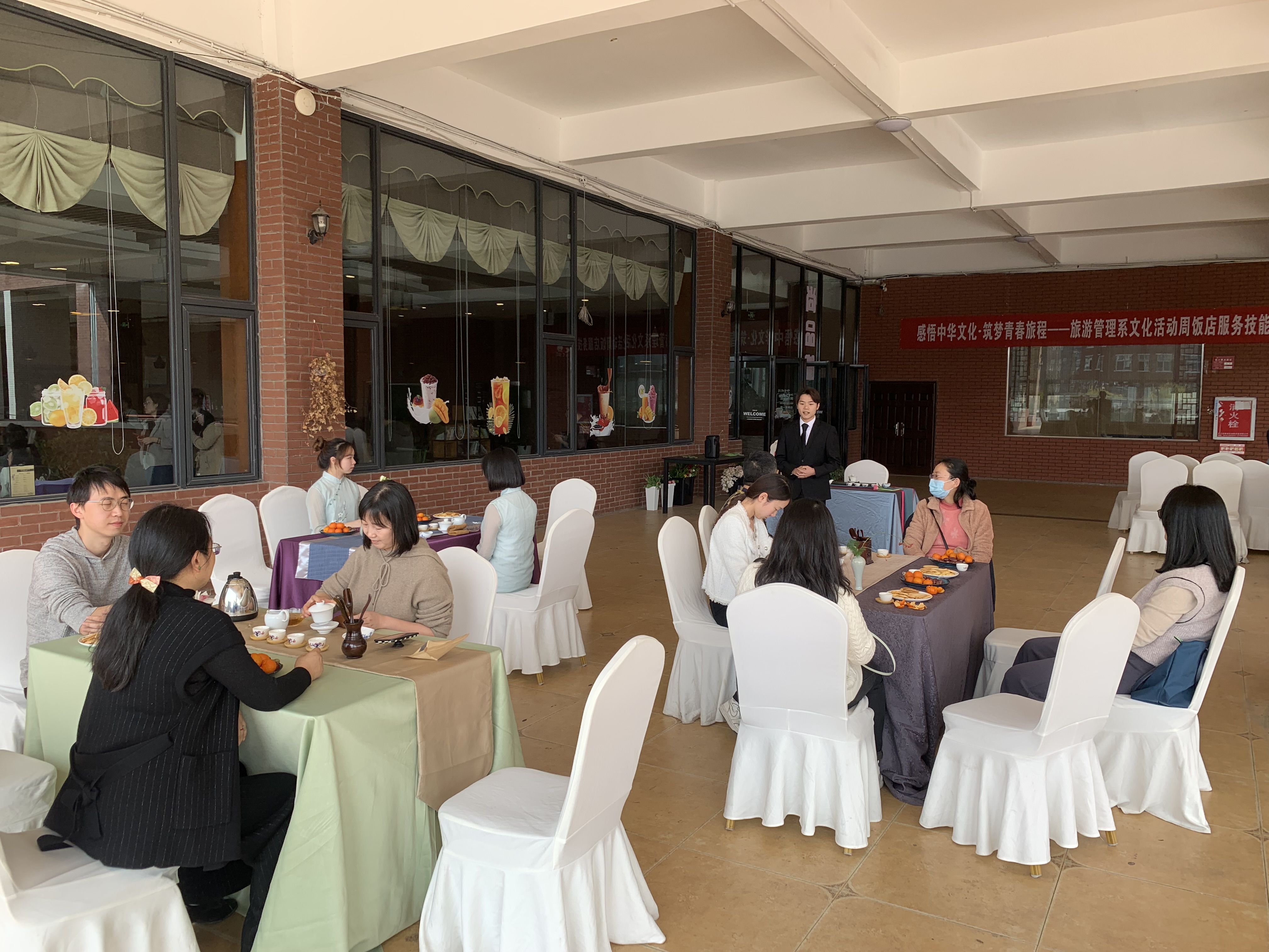泥壶小火慢烹茶,素手品茗坐观花。在第113个“三· 八”国际妇女节来临之际,为丰富旅游系女教职工的文化生活,提升大家的内涵修养,3月8日下午在旅游管理系工会的组织下,全体女教师在酒店服务与管理生产性实训基地咖啡厅外组织开展了“素手品茗,插花拾趣”主题活动。