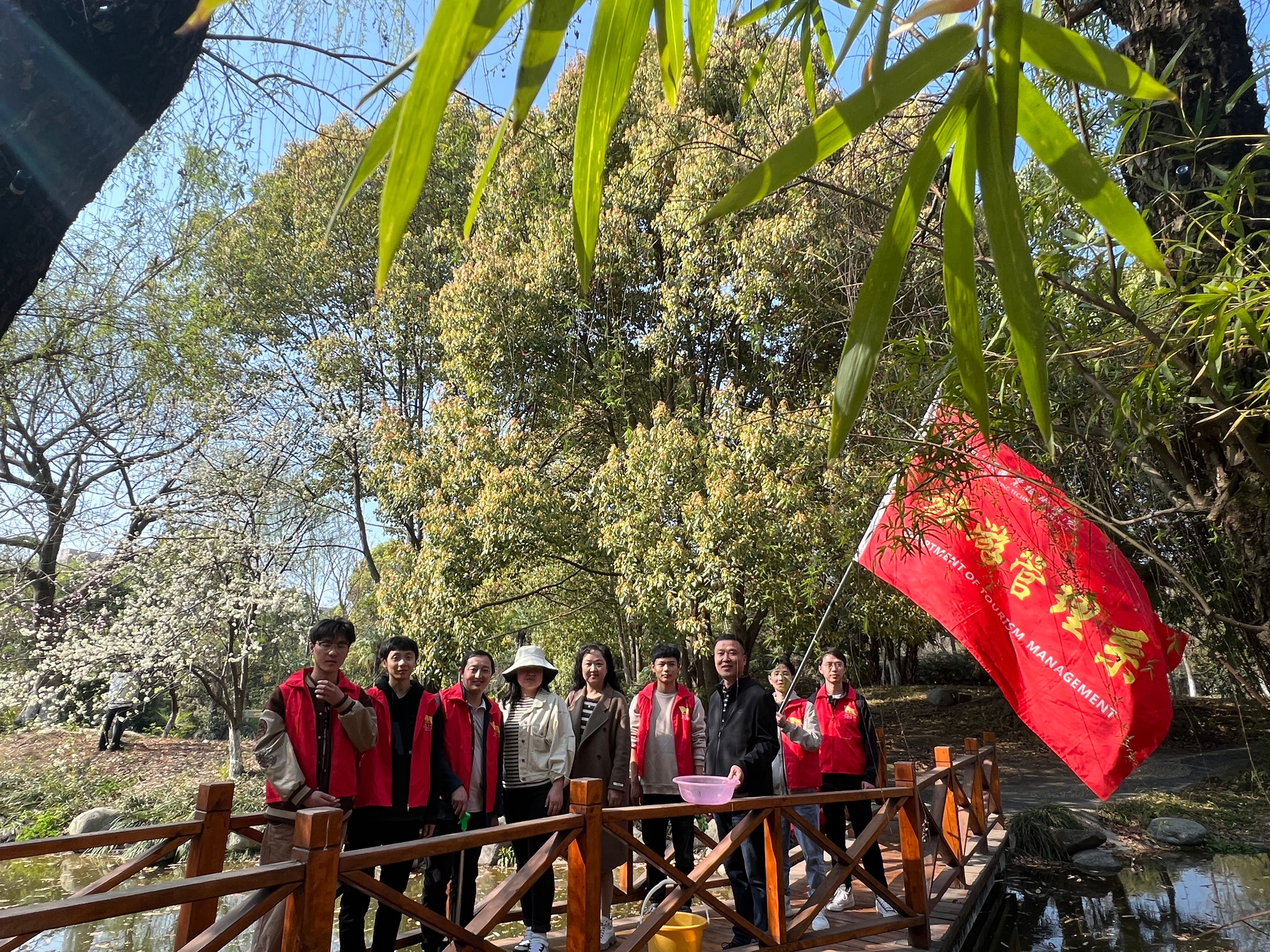 3月14日下午3点,旅游管理系师生在余立勤书记带领下,迎着太阳的光辉,在系部劳动实践基地植树节主题活动。师生一起为大树浇水、清扫小路的落叶、清理草地的枯枝。大家手中的工具在风中肆意挥舞,个个热情高涨,到处回荡着同学们的欢声笑语。