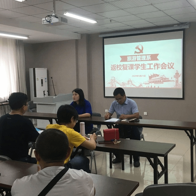 2020年5月21日,旅游管理系在旌湖尚品酒店会议室召开了全系返校复课学生工作会议,全系班导师和辅导员参加会议。