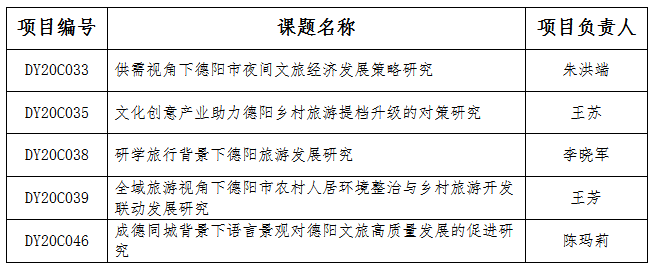 2020年,我院18项德阳市社科联“十三五”规划项目获批立项,其中旅游管理系立项5项。具体如下: