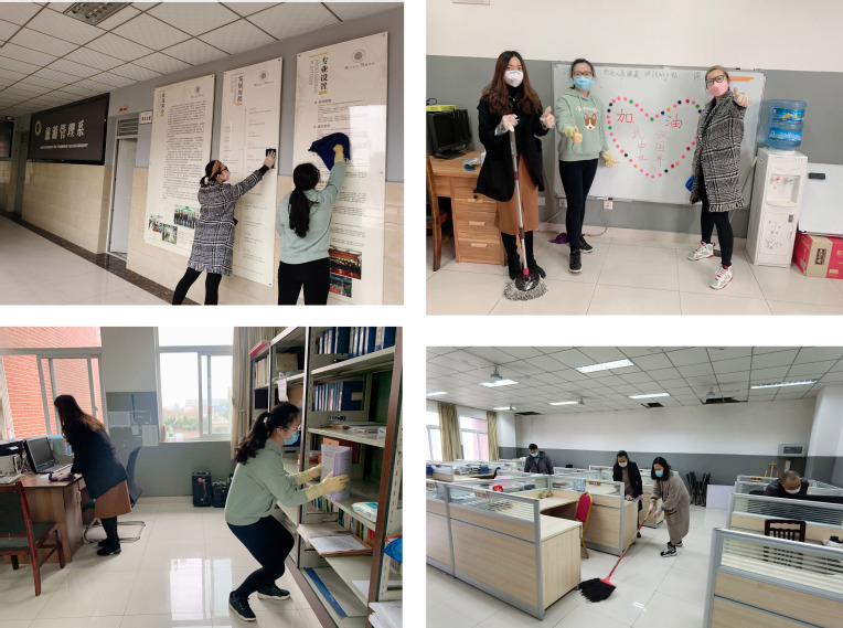 为有效做好学校疫情的防控工作,确保学校开学前能有一个健康、卫生、安全的环境,保障广大师生的生命健康,3月14日,在学院党委、学院办公室和后勤管理处的积极部署和指导下,旅游管理系对所辖区域的办公室、实训室、楼道、实训酒店等区域进行卫生清理和全方位消毒等卫生大扫除活动。
