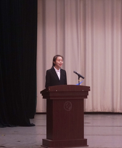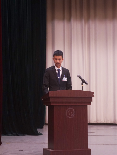 开学典礼上,2017旅游管理2班汪锐同学作为老生代表,结合自身的成长经历,对学弟学妹传授成长经验;2019级旅游管理2班曾玉洁同学作为新生代表,规划了大学生活、成长的蓝图。
