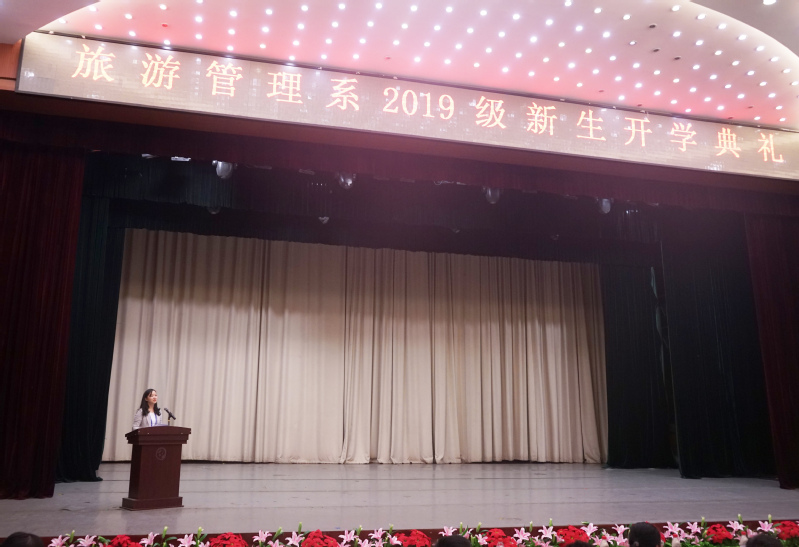 2019年9月3日下午,旅游管理系在二教演讲厅召开2019级新生开学典礼。典礼由旅游管理系副主任蒋敬主持,旅游管理系党政领导和全体教师以及2019级的新生参加了开学典礼。