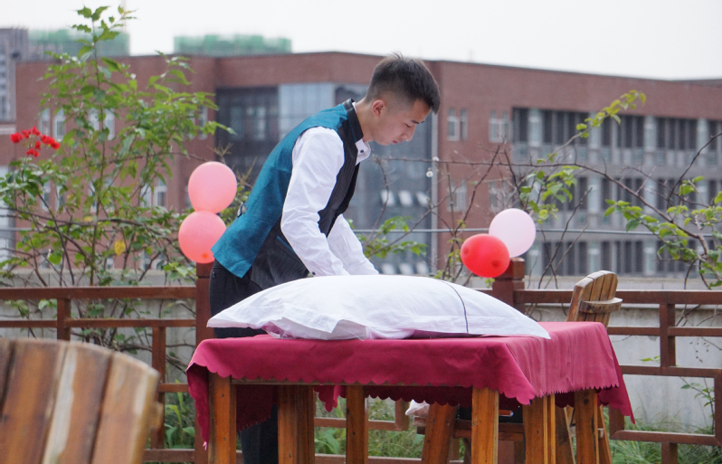 现代学徒制是一种现代职业教育制度,是学校教育与企业岗位培训的紧密结合。旅游管理系酒店管理专业现代学徒制项目实施一年多以来,极大地促进了我院与成都凯宾斯基饭店以及杭州洲际酒店、成都世纪城天堂洲际大饭店等企业的深度产教融合。为检验现代学徒制班的培养效果,并提升新生对专业的认同感,2019年10月22日下午,旅游管理系举办了2017级酒店管理(现代学徒制)班专业技能及班级文化展演活动。合作企业、旅游管理系教师、2019级酒店管理专业学生代表参加了活动。