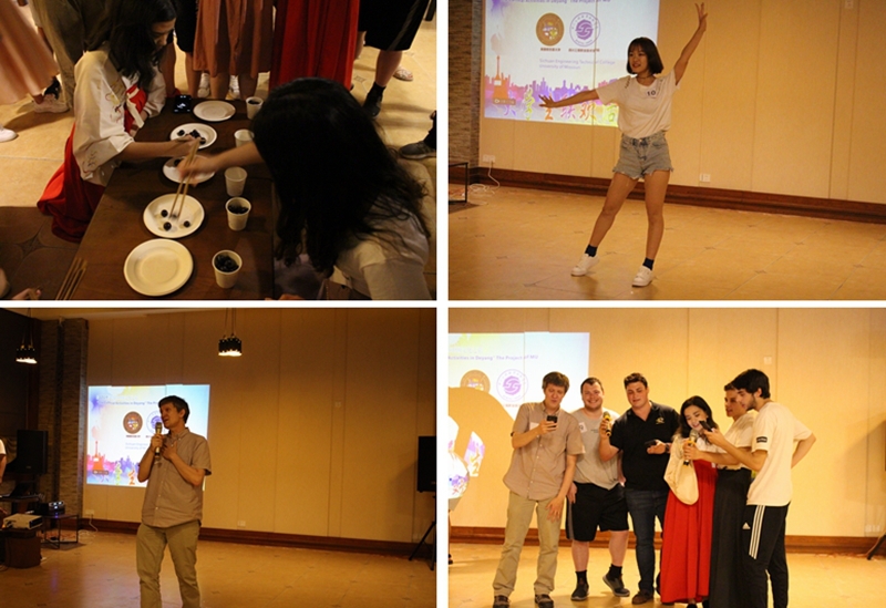 本次活动由我校两位学子和美国密苏里大学两位学子共同主持。在开场仪式完成后,活动参与人员根据活动前所分小组进行了投壶雅射、筷乐夹豆、吃粽子比赛等游戏活动,在游戏间隙,我校学子还进行歌曲演唱;密苏里大学带队老师Michael也给大家带来了一首中文歌曲《早饭歌》,赢得一片掌声,带动现场气氛。最后,美国密苏里大学全体师生与我校学生一起合唱了《月亮代表我的心》等,现场呼声不断,节目效果优异。