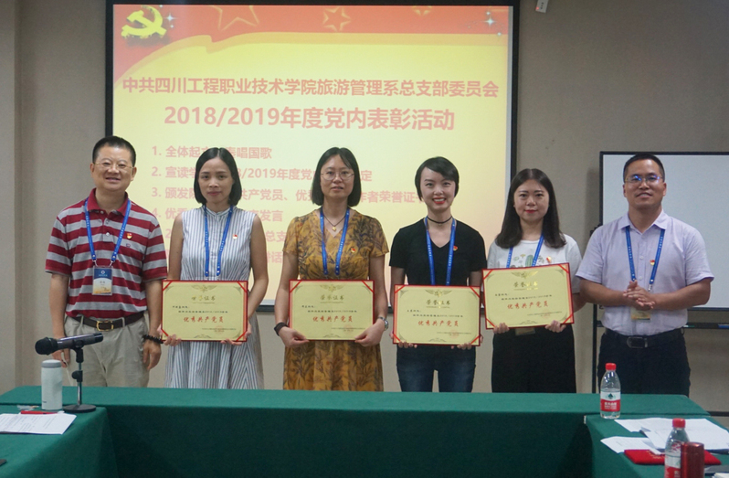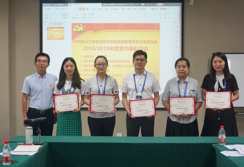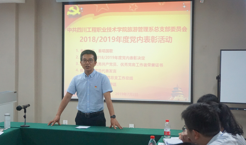 系主任、党总支副书记张伟同志宣读了中共四川工程职业技术学院委员会2018/2019年度党内表彰决定。本年度我系共有五名教工党员获院级“优秀党员”“优秀党务工作者”荣誉称号。表彰活动结束,优秀党员代表张杰和朱洪端两位同志做交流发言,党总支主持工作副书记张志友同志就过去一年党总支围绕学院创建“双高”这一中心工作,积极践行育人模式创新,立德树人,不断提升人才培养质量,加快师资队伍建设,推动国际化办学等方面情况作工作总结。