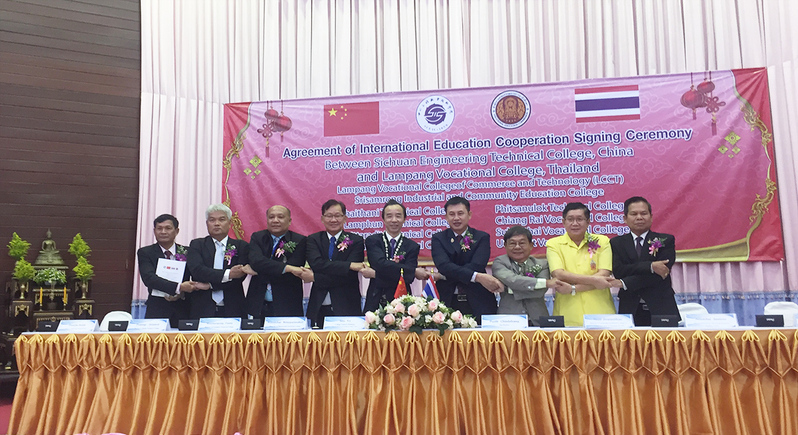 3月19日,司徒渝书记代表学院,与南邦职业学院、南奔技术学院等八所院校签订了工业机器人技术专业国际教育合作协议。该协议的签订,进一步扩大了中泰国际教育合作规模,丰富了合作的专业类型,将我院与泰国职业教育的合作推向纵深。