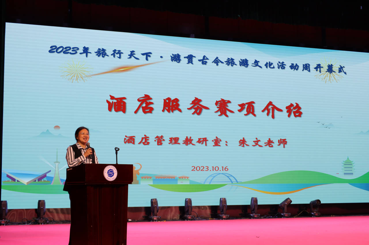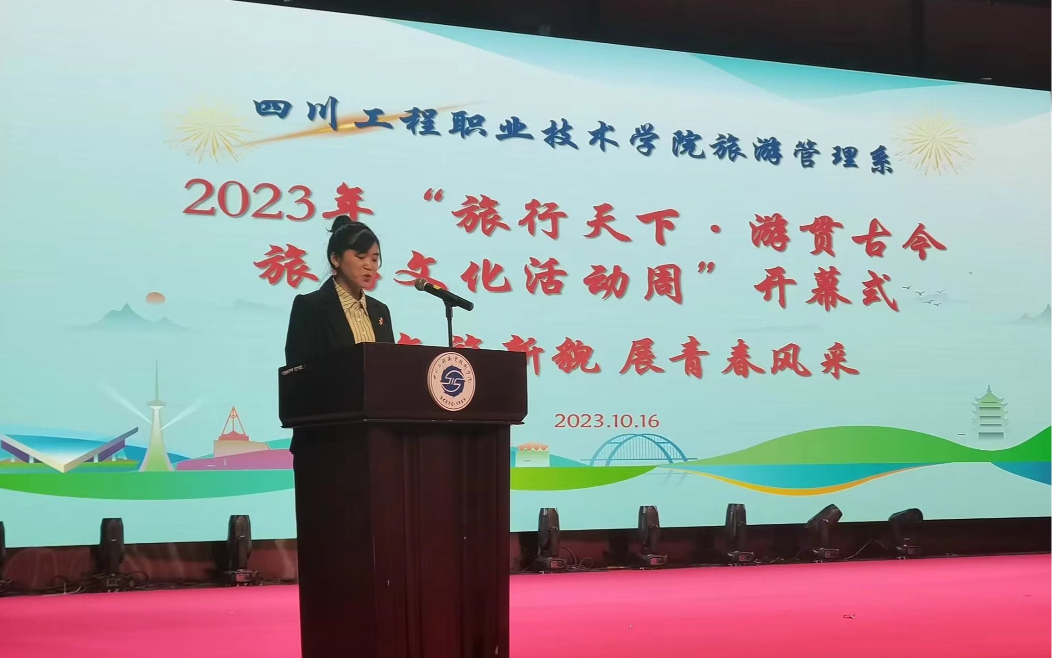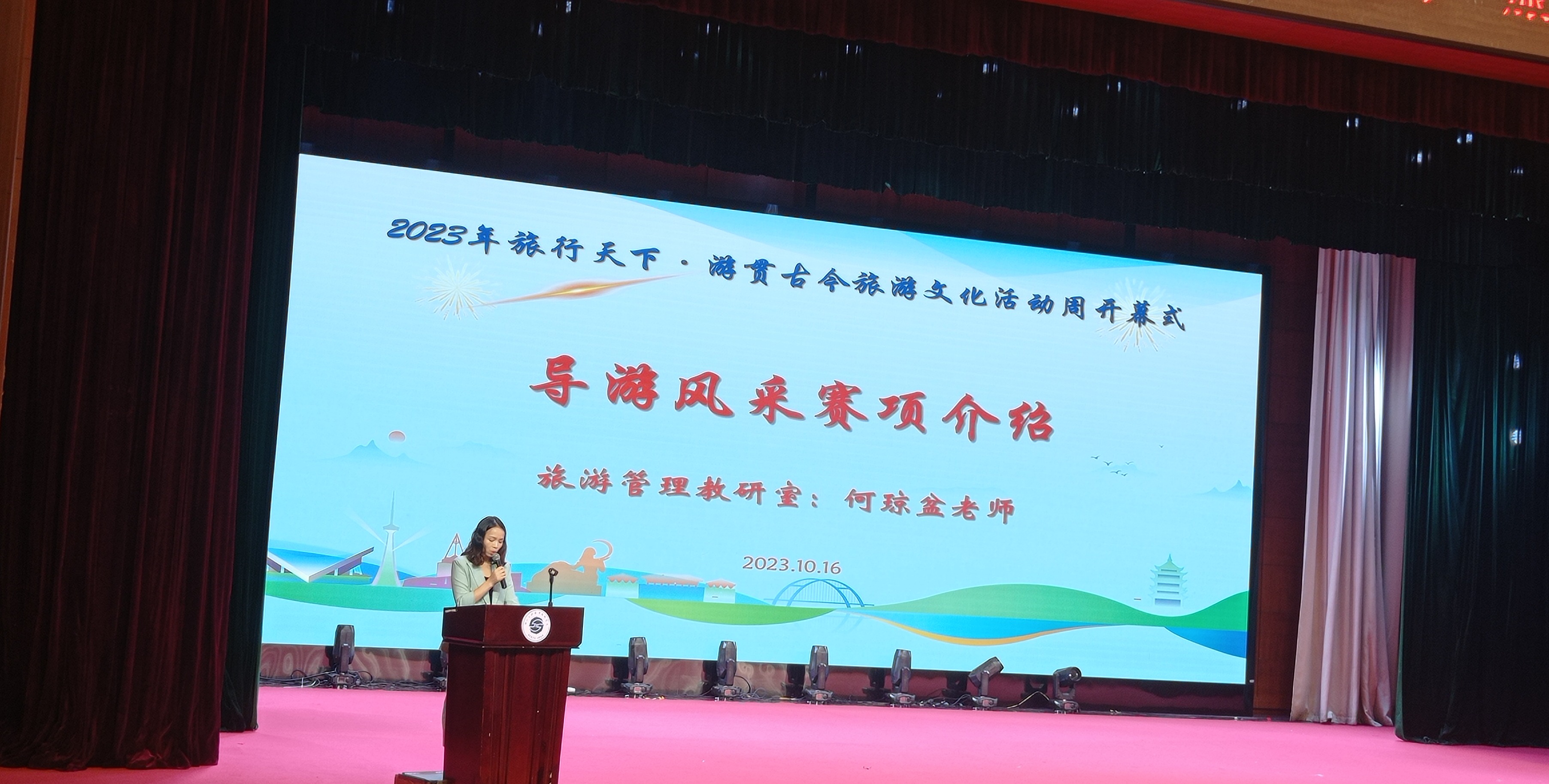 10月16日晚,以“旅行天下,游贯古今”为主题的2023年旅游管理系旅游文化活动周开幕式在二教演播厅顺利举办。旅游管理系全体教职工及2023级新生参加了本次典礼。