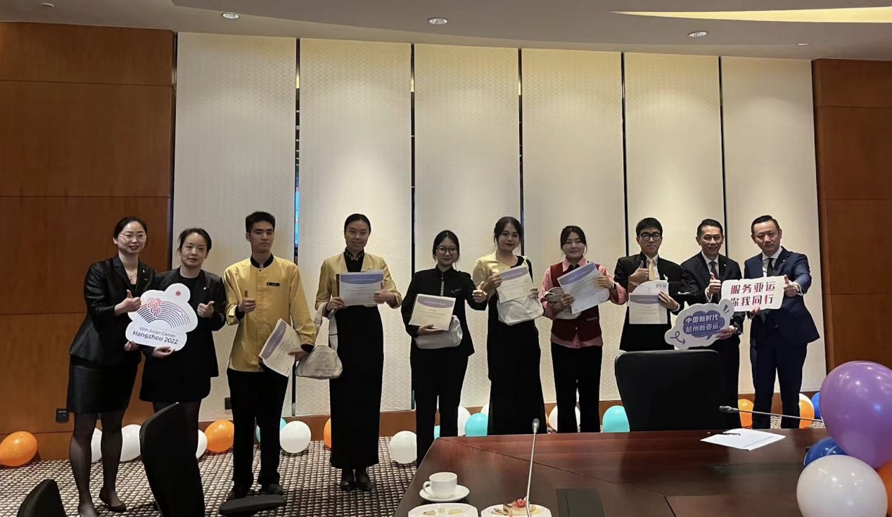 为完成此次国际化水平的接待任务,杭州洲际酒店在我院旅游管理系2021级旅游英语专业和酒店管理与数字化运营专业学生中,遴选了6名同学参与杭州亚运会的服务工作。期间,他们分别在礼宾、西餐厅、宴会厅等岗位,参与了第19届亚运会开幕式集结酒会、亚奥理事会110周年晚宴、闭幕式答谢酒会等接待工作,为各国领导和运动员提供优质服务。面对不同国籍、不同文化背景的客人,同学们按照亚运保障要求,对标一流服务水准,以良好的外语沟通能力和扎实的专业技能,认真完成工作任务,凭借卓越的服务水平和出色的工作表现赢得了各国来宾的好评,充分展现了四川工程学子的风采和综合素质。