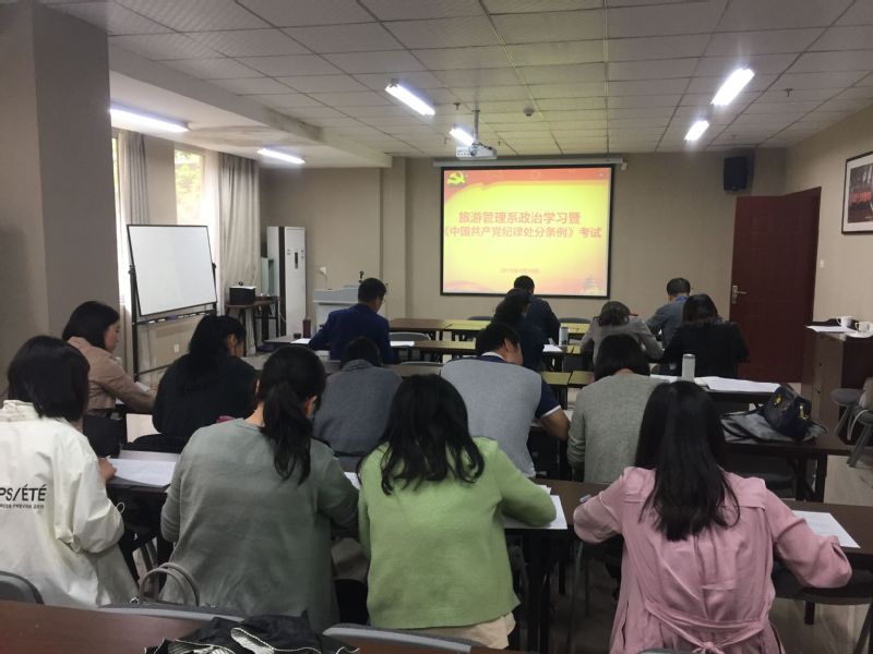 4月16日16:30,旅游管理系全体党员教师在旌湖尚品酒店会议室参加政治学习专题研讨会,学习2018年新版《中国共产党纪律处分条例》,并进行了新版《条例》相关测试。