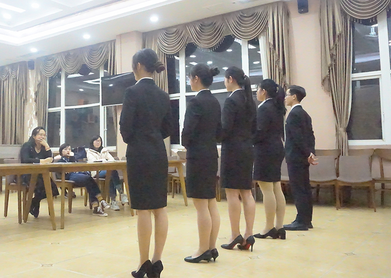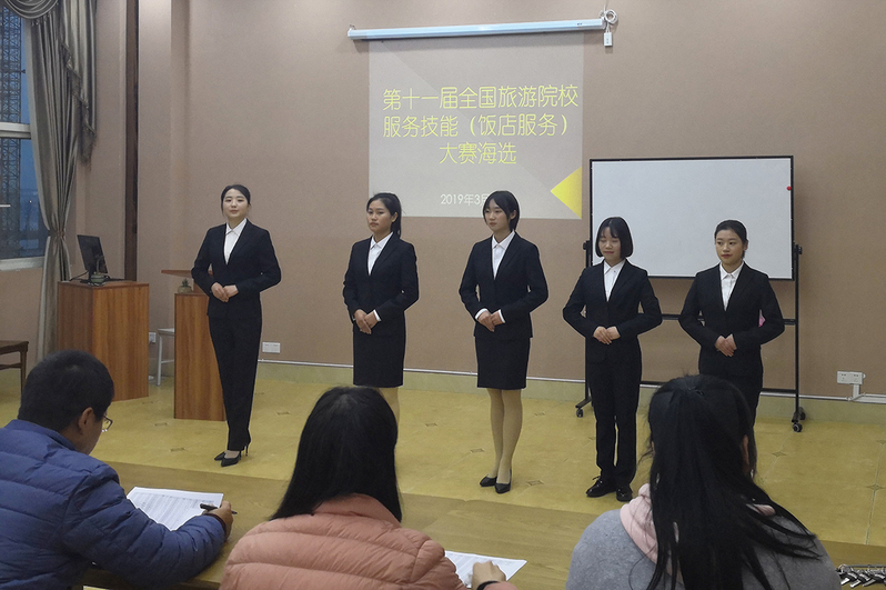 为备战第十一届全国旅游院校服务技能大赛,提高学生专业素质和技能,旅游管理系于3月18日晚七点在西餐实训室举行了第十一届全国旅游院校饭店技能服务大赛的初选。