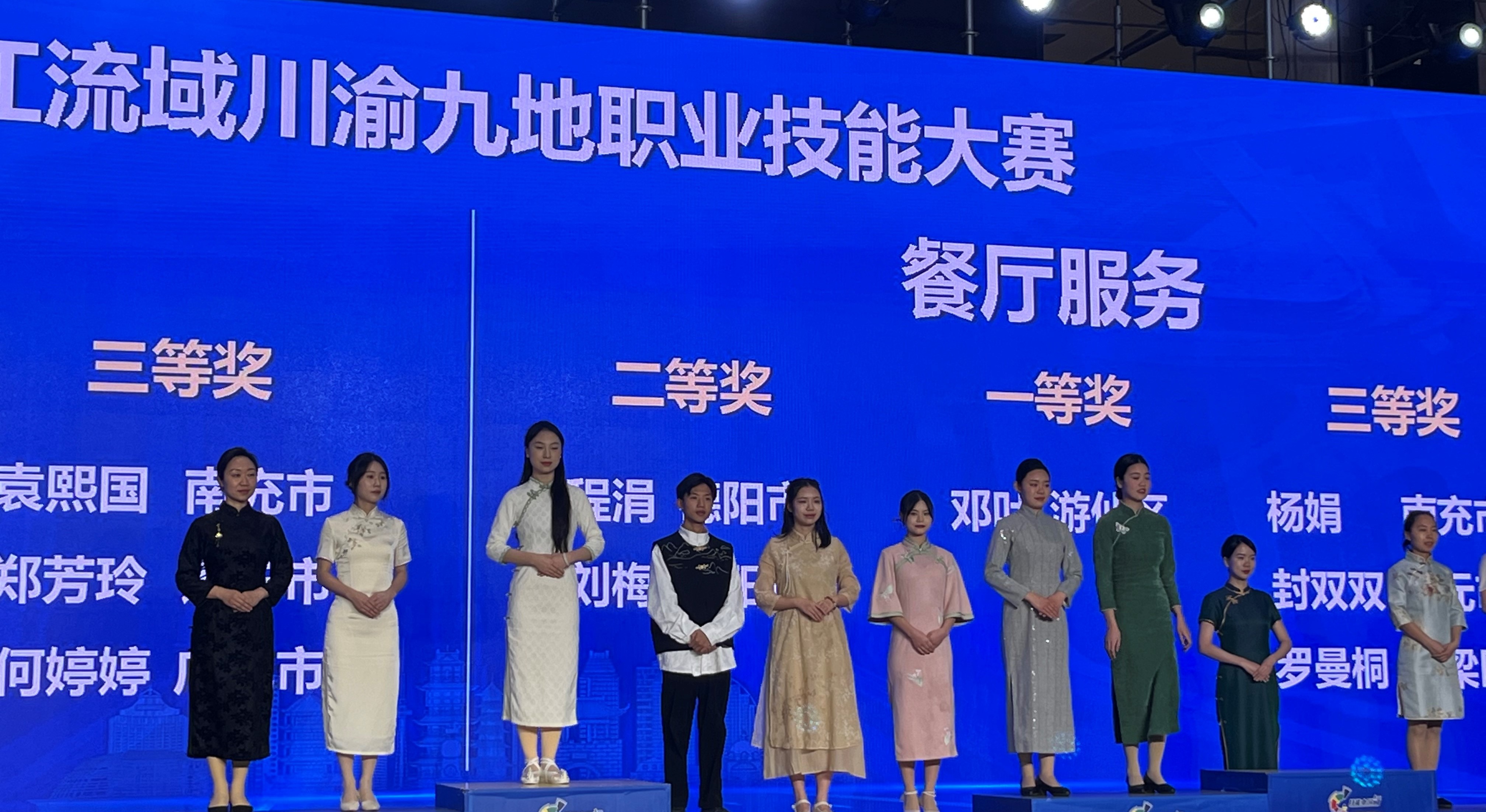 旅游管理系2021级酒店管理与数字化营运专业1班学生程涓作为德阳代表队选手与其他城市代表队选手进行角逐,选手分别完成宴会主题设计方案、主题宴会摆台、说明与答辩共3个模块的竞赛。程涓最终不负众望在赛场正常发挥,展现了我系学子的风采,最终夺得第二名,荣获二等奖。