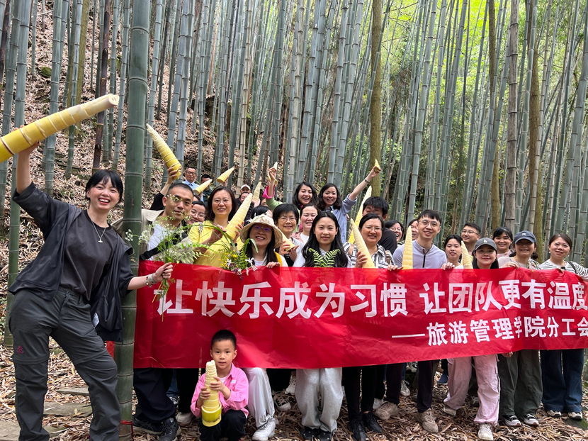 为丰富教职工文化生活,增强团队凝聚力,旅游管理学院分工会于4月29日组织开展了以“让快乐成为习惯,让团队更有温度”为主题的春游活动。学院教职工齐聚风景秀丽的绵竹九龙山,体验挖春笋、非遗拓印等特色活动,在欢声笑语中放松身心,增进情谊。