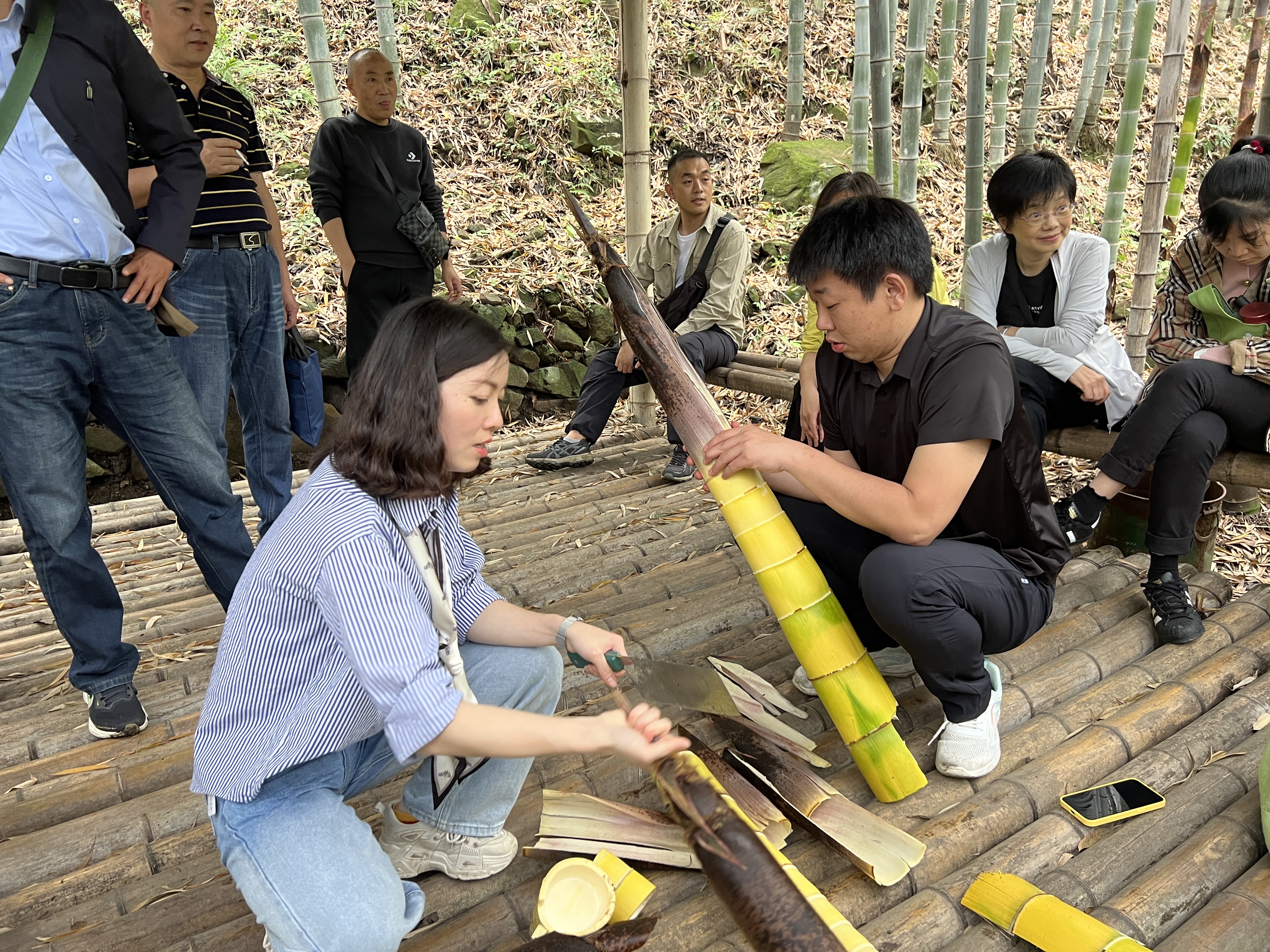 活动当天,阳光和煦,春意盎然。教职工们走进九龙山的竹林,亲手挖掘鲜嫩的春笋,感受劳动的乐趣和大自然的馈赠。随后,大家共同参与非遗拓印体验,在传统技艺的制作过程中领略中华文化的魅力。活动现场气氛热烈,老师们纷纷展示自己的作品,分享收获的喜悦。