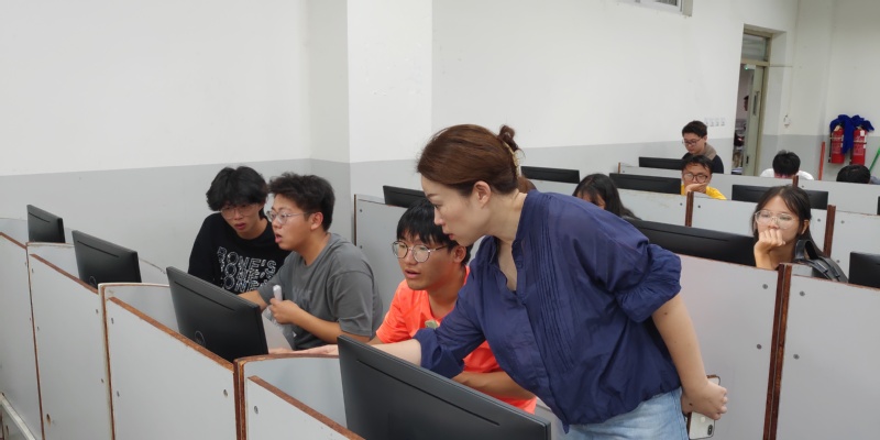 刘艺老师对正在进行测试的同学进行指导
