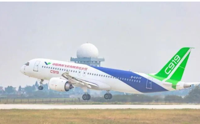 C919中型客机,全称COMAC C919,是中国首款按照最新国际适航标准,与美法等国企业合作研制组装的干线民用飞机,于2008年开始研制,是我国自行研制、具有自主知识产权的大型喷气式民用飞机。