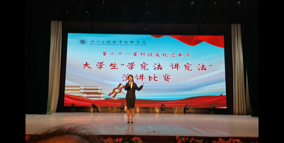 为深入贯彻法治思想,弘扬宪法精神。在第二十一届科技文化艺术节开展之际,学校举办了大学生“学宪法 讲宪法”演讲比赛。我系2022级理化测试与质检技术专业1班的胥莎同学以《以宪法维护平等,以制度保障自由》为题参加了本次比赛,慷慨激情的演讲感染了在场的每一位观众,获得了评委老师们的一致好评,从12位参赛选手中脱颖而出,荣获一等奖。