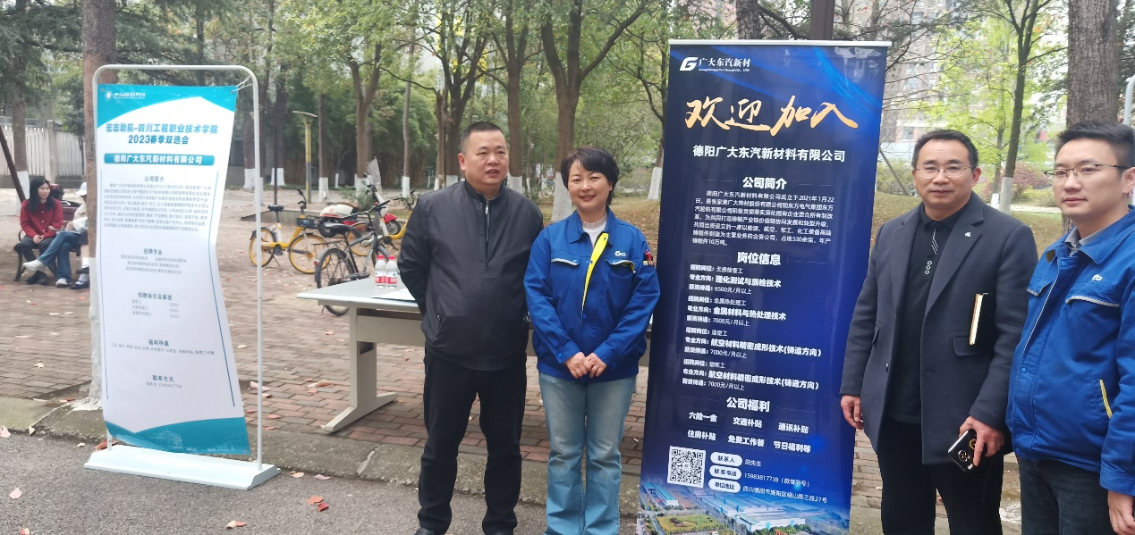 2023年3月30日,多家企业进校园给2023届毕业生进行企业宣讲。为贯彻落实教育部“访企拓岗促就业”专项行动计划,开拓更多优质就业岗位和校企合作机会,我系王泽忠主任与德阳广大东汽新材料有限公司等多家企业代表亲切交谈,深入交流,深化“人才供需、校企合作”。