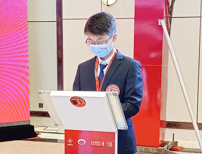 冯鹏同学在山西高平参加了答辩会。答辩环节,冯鹏同学沉着稳定,在12分钟内清晰阐释了团队的设计思路、介绍了设计成果,准确地回答了专家的提问,获得了好评。今年的决赛,还增加了知识竞赛环节,必答题5分,风险题1分。在该环节,冯鹏同学根据自己的知识积累,发挥出色。