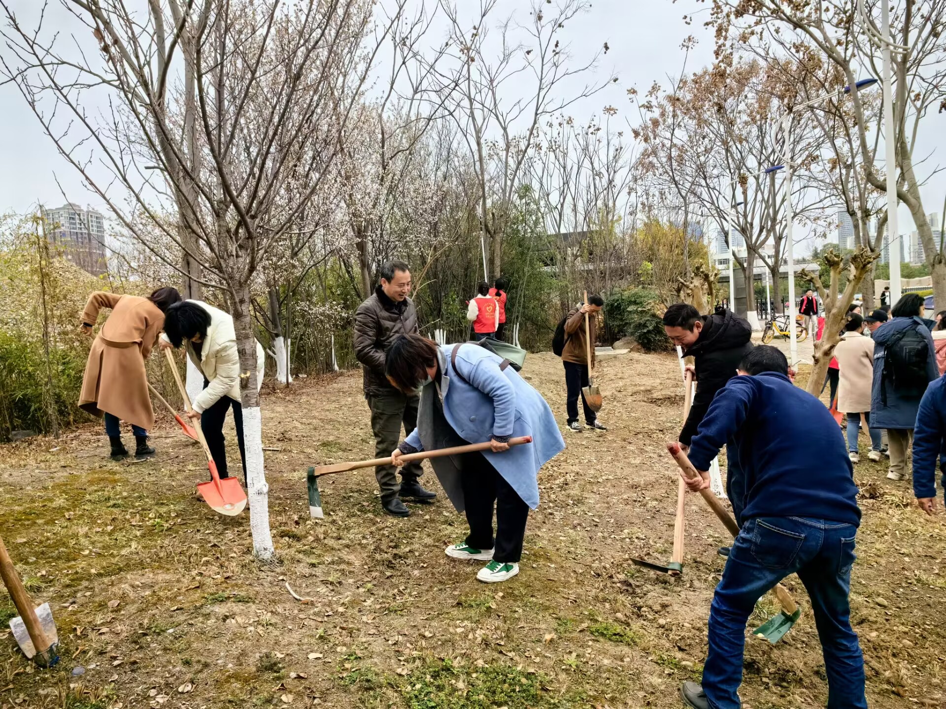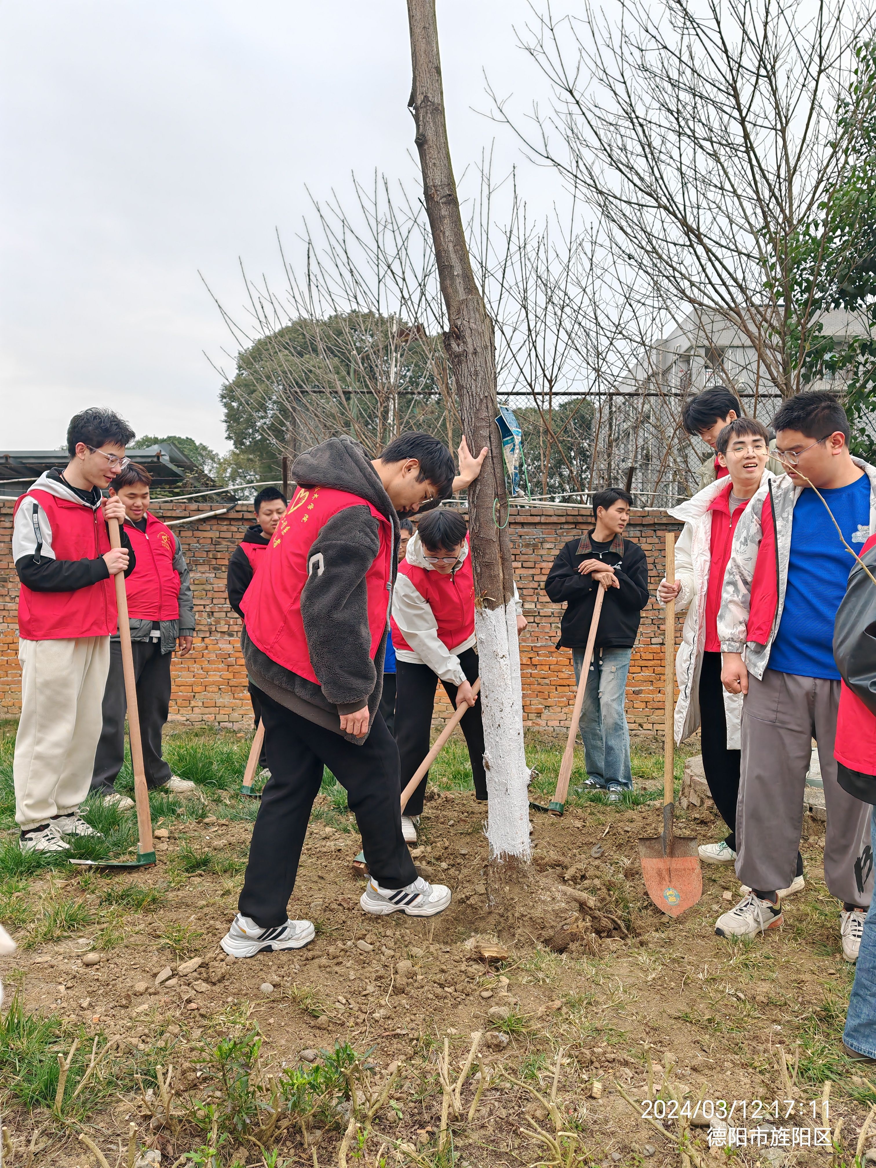 3月12日材料工程系数十名教职工、部分班级学生、学生会人员齐聚校园内的植树区域。大家热情高涨,纷纷拿起铁锹、铲子,投入到植树、施肥、修剪枯枝的行列中。大家分工合作,有条不紊地进行着各项任务。有人负责挖坑、有人负责培土、有人负责浇水,还有专人负责修剪枯枝,大家齐心协力,共同为校园的绿化事业贡献着自己的力量。