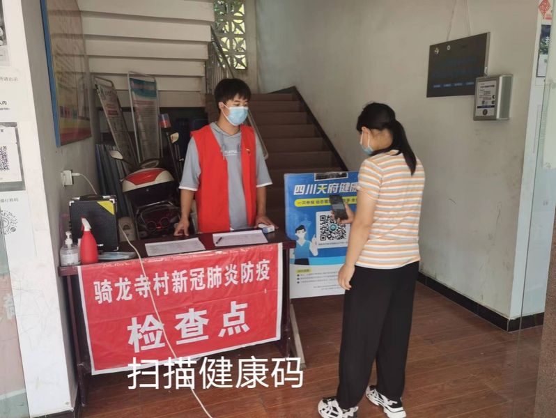 2021(本科)材料成型及控制工程1班刘长银同学,在家乡泸县云锦镇骑龙寺村新冠肺炎防疫检查点,协助完成访客扫码、测温和登记工作。
