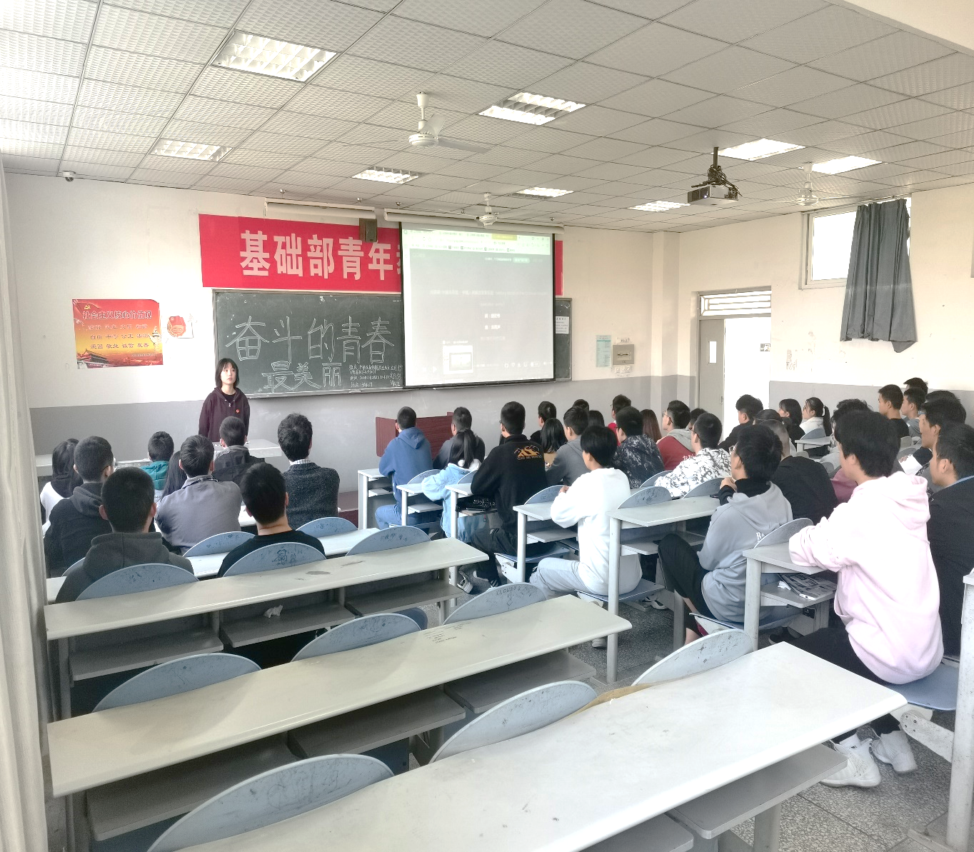 在学院团委、材料工程系团总支举办的各项活动中,我班积极参与,表现突出、不甘落后,班级在“新生篮球赛”荣获第二名,“2019年迎新晚会合唱”获得第三名。两名同学在学院举办的“返家乡”暑期社会实践类活动荣获一个一等奖和一个二等奖。班级多名同学在院系学生会、团组织承担职务、为大家服务。同学也积极参与学院各种社团、协会的活动,多名同学获得表彰。积极组织政治学习活动是体现我支部特色的一个重要方面。在进入大学的近两年时间里,为了丰富大家的业余生活,我支部开展了多项活动。围绕班集体我们组织了秋游德阳,元旦晚会等活动,“每逢佳节倍思亲”,在中秋佳节之际,我们和大家一起吃月饼,让大家沉浸在幸福和欢乐之中,感受集体的温暖,增进同学们之间的友谊。“我爱我的国——社会主义核心价值观演讲比赛”、“模拟法庭——敬畏法律从心所欲不逾矩”、“防疫行动——香囊赠亲人寄相思”等,党员的宣传,团支部良好的带动,广大团员的爱国热情高昂。