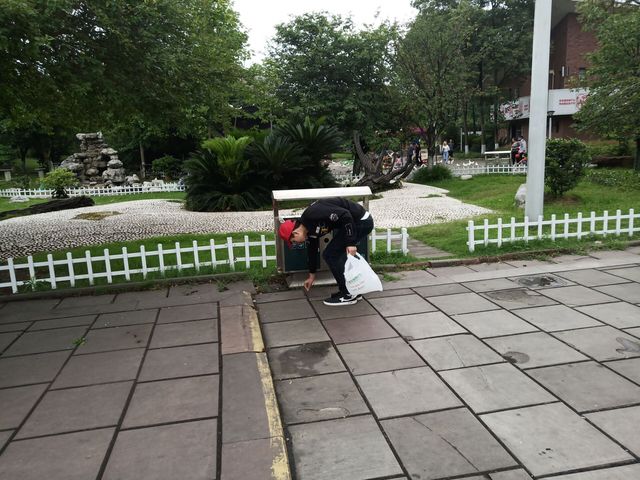 因为此次活动的目的地离我们较远,所以我们乘坐28路公交车至活动地点附近,然后有序排队到达石刻公园内,进入公园内遇见热情的阿姨,她大致为我们讲述了活动范围,因为石刻公园较大,我们决定分组完成任务,两人一小组对公园内的垃圾进行清理。一些志愿者们有的清理广场上的垃圾,有的清理周边草坪的垃圾,整个活动中,大家都很积极,大家的劳动也得到了公园游客的一致好评。有的游客在这股劳动热情的感染下,主动将垃圾放入同学们的垃圾袋中,或扔到垃圾桶里。在大家的共同努力下,公园及周边环境被打扫得非常干净、整洁。虽然有点累,但大家看到自己劳动的成果,都说很值得。