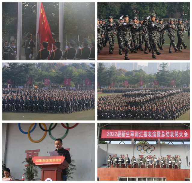 2022年11月19日上午10:00,我校军训汇报表演在北校区足球场内举行。表演在《阅兵进行曲》结束后正式开始,分列式方队迈着整齐的步伐通过主席台,接受上级领导以及部队首长的检阅。他们用坚定的步伐、整齐的队形、嘹亮的口号诠释着他们高昂的斗志。紧接着是救护方队、拳术方队、匕首操方队、战术方队和数字方队的依次表演,他们都拿出了最好的精神面貌。在党委学工部唐军的主持下,进行了军训表彰大会,向12个连队授予先进集体称号,活动最后,由院长肖峰教授代表学校全体人员,向带队老师和教官表示了诚挚的问候。军训汇报表演、表彰大会在全体齐唱《强军战歌》的歌声中落下帷幕。