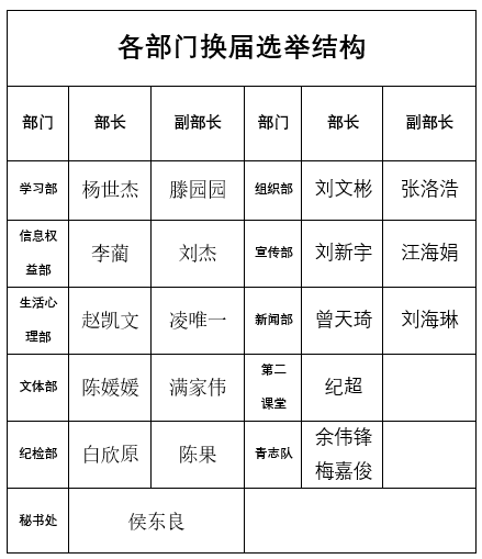 本次会议到场的有团总支书记汤璘老师,现任主席团全体成员、各部门部长,以及本系各班班长、团支书与班级代表。大会于10点10分正式开始,由秘书长邓向东担任本次会议的主持人,向在座的评选代表简述评选规则,在验明选票有无纰漏后,向每位评选人发放选票。本次评选,从16名各部推荐候选人中选出9人加入到主席团的队列。入选的干部分别有团副赵雪琴,办公室主任达航,青志队队长田浩,第二课堂主任周荣飞,学生会主席池奕博,学生会副主席尹蔚杰,欧阳博川,陶丽彬以及秘书长舒思源。