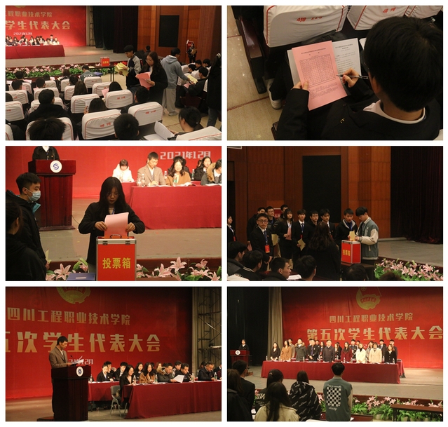 2021年12月5日8:20我校第五次学生代表大会在二教演播厅展开。全校近两百名学生代表参加会议。同时参加会议的领导有:李登万教授、肖峰教授、郑辅春纪委书记、及各系部书记。