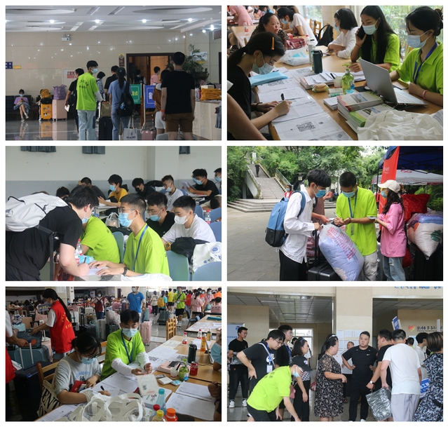 因疫情影响,本次迎新工作任务繁重。今天是迎接新生的第二天,在我校3号教学楼3a202教室和图书馆内,依次安排了团总支学生分会干事们,对昨天没有入校登记以及核酸检测没有完成的同学进行了后续完善工作。干事们有序给新生发放矿泉水、系部手提袋、新生手册等物品,并帮助新生寄放行李以及安排新生休息。下午由于新生人数过多,为了给新生提供一个更好的休息环境,在3教迎新点的教室换成了两个大教室。下午16:00,在我校南校区6号教学楼大厅,由我系各班班助组织新生排队,进行军训服装的发放。我系党总支谢飞书记、团总支汤璘书记以及新班辅导员们也来到现场,对工作进行指导,保证每一位新生都能够拿到合适的军训服装。晚上20:00,今天的迎新工作顺利结束。