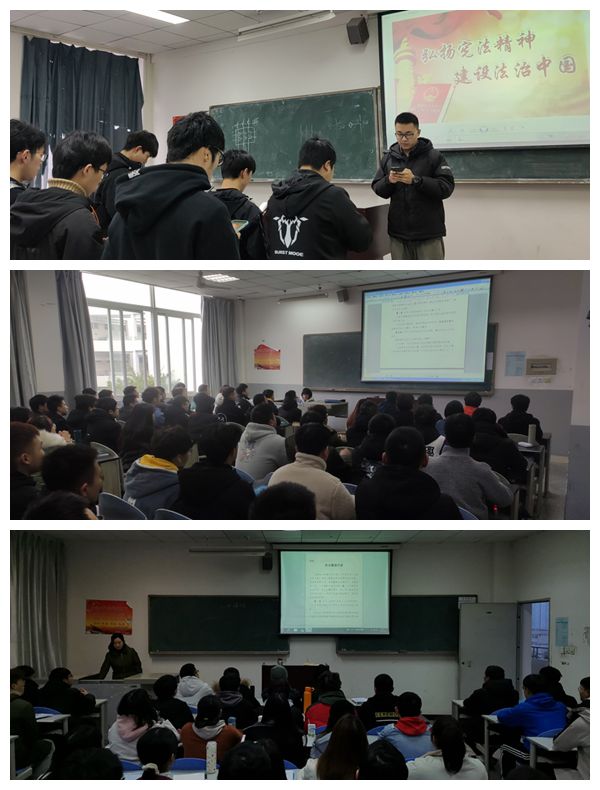 我系团总支学生分会也组织全体学生干部于12月4日上午9:00在6B210举行了宪法晨读活动,由团总支学生分会主席何江峰领读,全体学生干部跟读,一起学习了宪法知识。