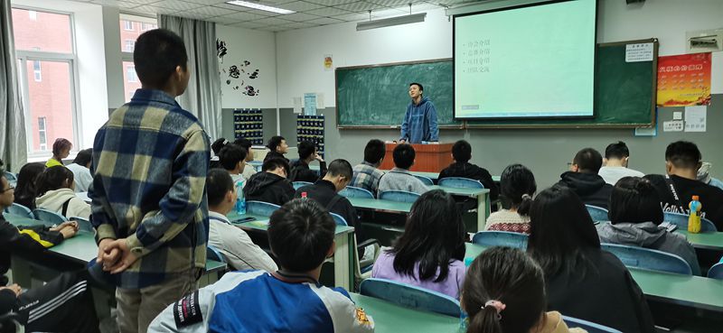 何老师介绍了物联网协会、“互联网+”大赛、成都物联网产业发展联盟技能大赛和学院第十一届科技节的基本情况,鼓励同学们能积极参与到比赛之中。他强调在做项目的时候,团队协作交流十分重要,希望加入学生探索式学习项目的同学们都能多交流,为各自的项目提出更好的建议和解决方案,同时也希望同学们能在各项大赛和学院科技节中取得令人满意的好成绩。
