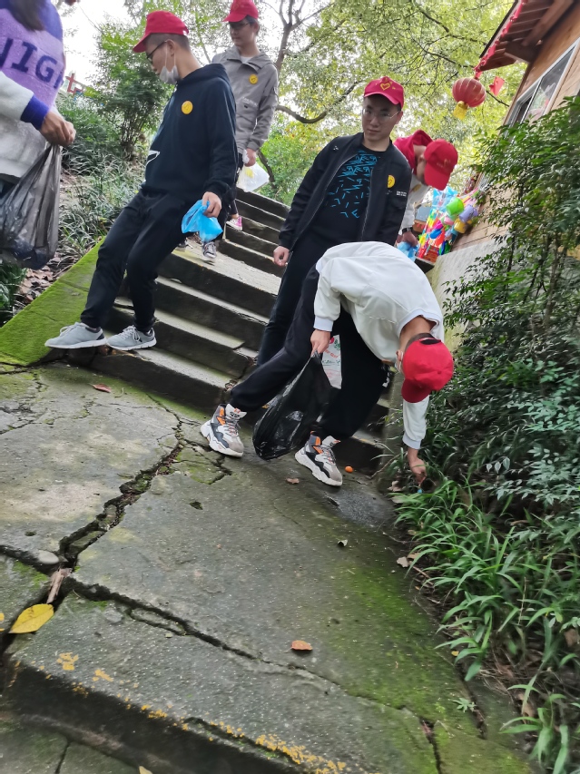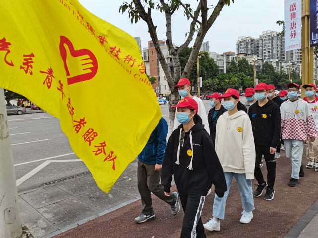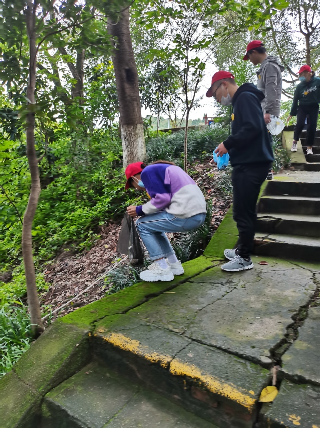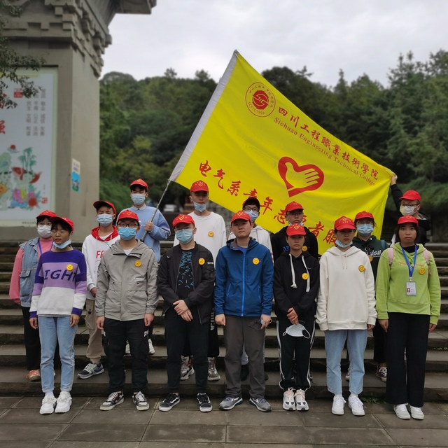 电气系青年志愿者分部14名志愿者于2020年10月20日在德阳市东湖山公园开展了以“志愿东湖,爱使我行”为主题的志愿者活动。