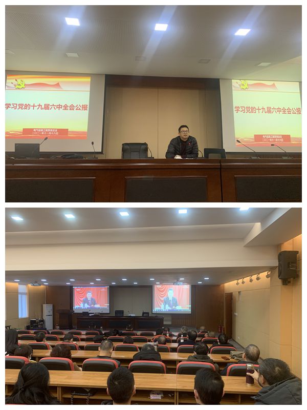 11月16日下午,电气系组织全体教职工在育成中心举行学习宣传贯彻党的十九届六中全会精神会议,本次学习由党总支书记谢飞主持。