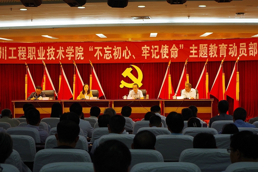 9月28日,四川工程职业技术学院“不忘初心、牢记使命”主题教育动员部署会在图书馆3楼报告厅举行。会议深入学习贯彻习近平新时代中国特色社会主义思想,全面落实党中央和省委主题教育工作会议精神,落实省委教育工委、省经济和信息化厅党组要求,对我校开展“不忘初心、牢记使命”主题教育进行动员部署。
