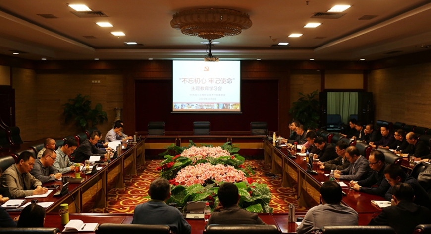 10月9日全天,学校在图书馆108会议室召开“不忘初心、牢记使命”主题教育集中学习研讨会议。党委书记司徒渝主持会议,全体校领导、党委委员、中层正职及主持工作的中层副职党员干部参加学习,主题教育领导小组办公室相关工作人员列席会议。