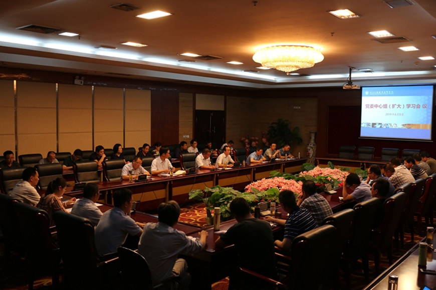 2019年6月5日下午,学校在图书馆108会议室召开党委中心组(扩大)学习会议,贯彻落实高校思想政治和意识形态相关工作。全体校领导、中层干部参加会议。会议由党委书记司徒渝主持。