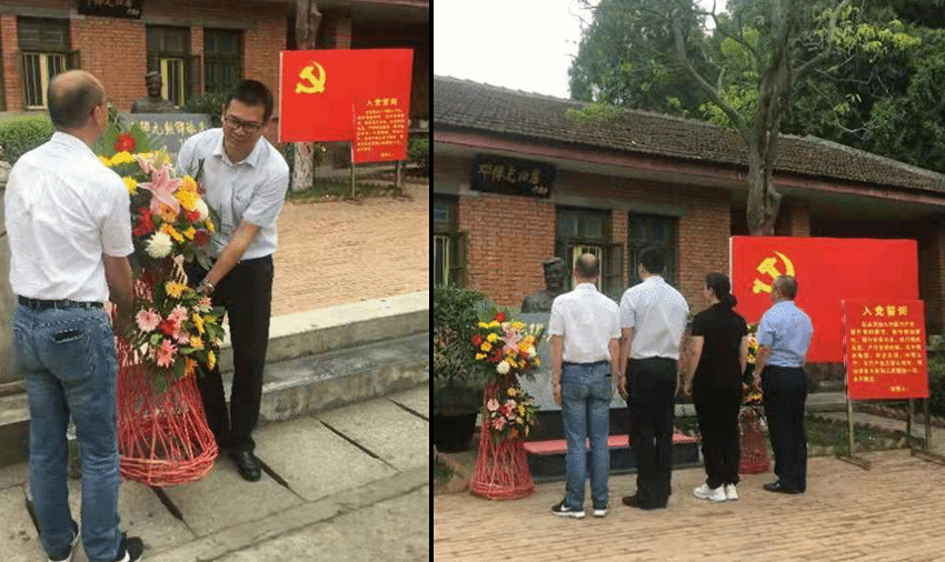 在讲解员的引领下,同志们参观了两弹纪念馆、邓稼先故居、防空洞等旧址,深刻感受老一辈科学家“干惊天动地事,做隐姓埋名人”的奉献精神,汲取“万众一心加油干,越是艰险越向前”的磅礴力量。在“两弹”元勋邓稼先故居铜像前,全体教师整齐列队肃立同唱国歌,向铜像敬献花篮,表达了对“两弹”元勋们的崇敬和缅怀之情,大家重温了入党誓词,誓向革命先辈学习。