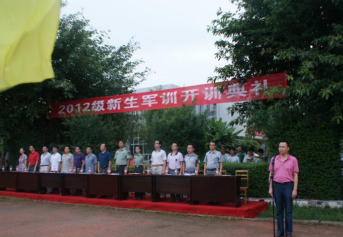 军训开训典礼在二教前的运动场举行,学院副院长贺文佳、部队首长、学生处正副处长和各系党总支书记参加开训典礼。典礼由学生处处长文志刚主持。