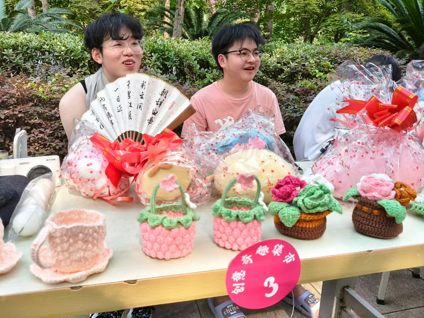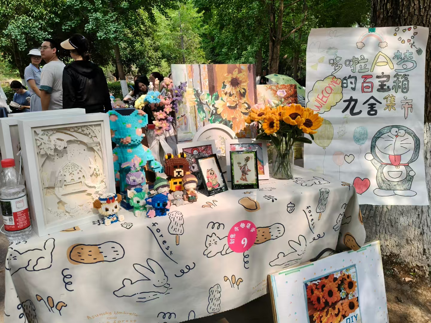 活动现场,20余个创意摊位井然有序地排列,涵盖了手工艺品、文创设计、艺术绘画等多个领域。各学院学生纷纷亮出自己的绝活,展示独特的创意和才华。艺术学院学生的水彩绘画,色彩斑斓、风格各异,彰显出深厚的绘画功底和丰富的艺术想象力;机械学院学生带来的手办、乐高作品,吸引了众多科技爱好者的驻足观赏;此外,不少同学制作了精美的手工饰品现场售卖,许多融入学生独特创意的手工作品迅速被抢购一空。活动还设置了丰富多样的互动环节,让参与者在欣赏和购买创意作品之余,也能亲身体验创作的乐趣。