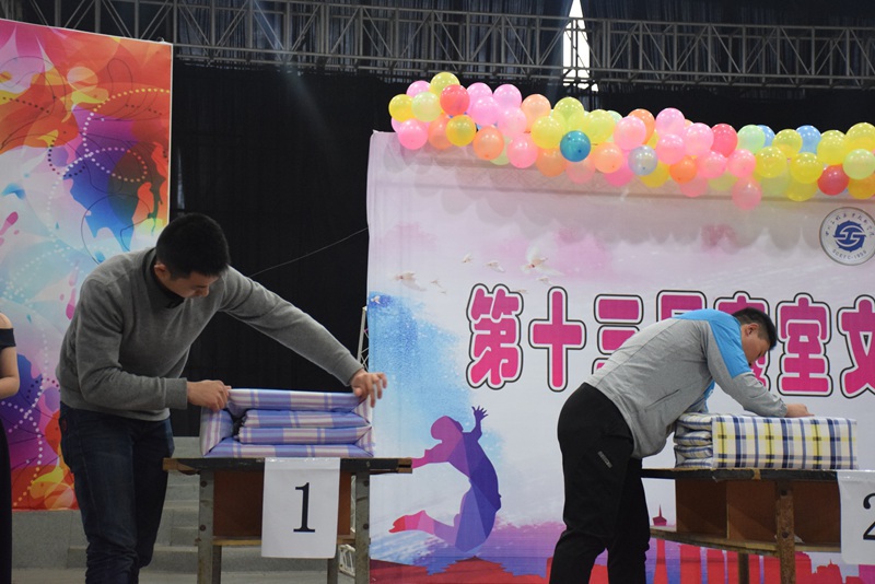 开幕式后,叠军被比赛随即举行。来自全校的32位“被林高手”同台竞技,在2分钟的时间内比拼叠被技能和专注精神;各舍选送的精彩节目悉数登场,在紧张的竞赛氛围中为观众送上艺术的清新。最终,来自15舍213的石胜强、10舍519的谭俊、6舍420的黄仁才夺得叠军被比赛的桂冠。