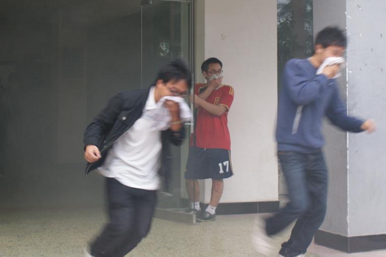 为了保证本次演习安全有序举行,活动主办方保卫处、学生处制定了详细的演习预案,相关系部、辅导员对学生进行了安全教育和紧急疏散常识的宣传,保卫处、学生处负责人亲临现场指挥,宿舍值班人员、辅导员、院治保会、宿管会学生干部按要求维护现场及周边秩序,对疏散学生进行了有序引导。在浓烈刺鼻的“火灾”烟雾燃起的同时,学生按疏散路线快速有序疏散到安全地带,未发生滞留、摔倒、踩踏等意外现象。
