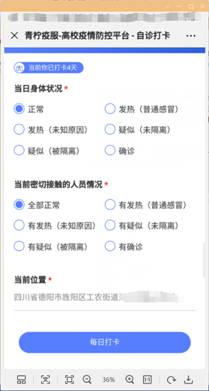 ● 每天如实填报自己的健康信息并点击“每日打卡”提交,如下图: